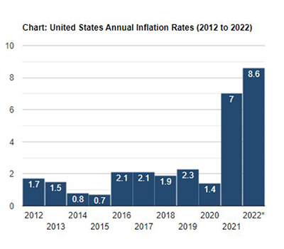 The storms and waves of interest rates are rising at unprecedented speeds. As depicted below, the U.S Bureau of Labor Statistics notes that the all-items index increased 8.6% over the last year, hitting a 40-year high.2