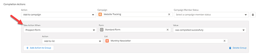 In short, Salesforce Pardot Conditional Completion Actions let you add a layer of simple logic to existing completion actions.