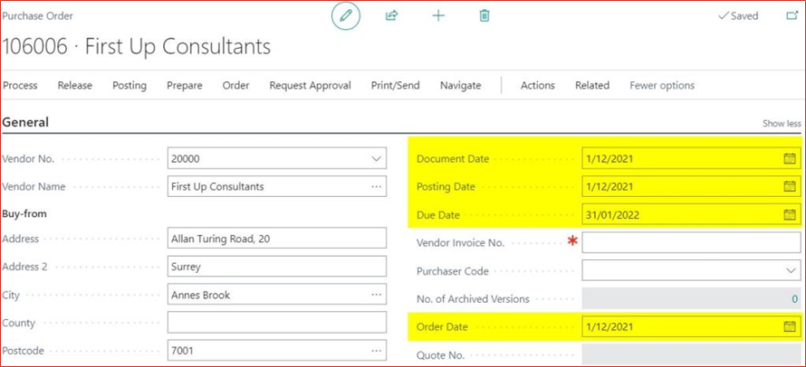 With the basics covered, now we’ll walk you through how to use purchase order dates in Microsoft Dynamics 365 Business Central.