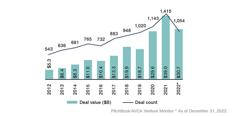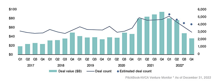 - 1 a b "Pitchbook-NVCA Venture Monitor: Q4 2022," https://pitchbook.com/news/reports/q4-2022-pitchbook-nvca-venture-monitor, January 11, 2023.