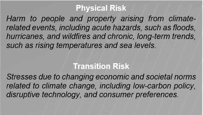 Banks will also be expected to not only evaluate physical risks, both acute and chronic, but also transition risks as well, considering potential market, macro, and socioeconomic shifts and anticipating impacts to the balance sheet, income statement, or other financial statements.