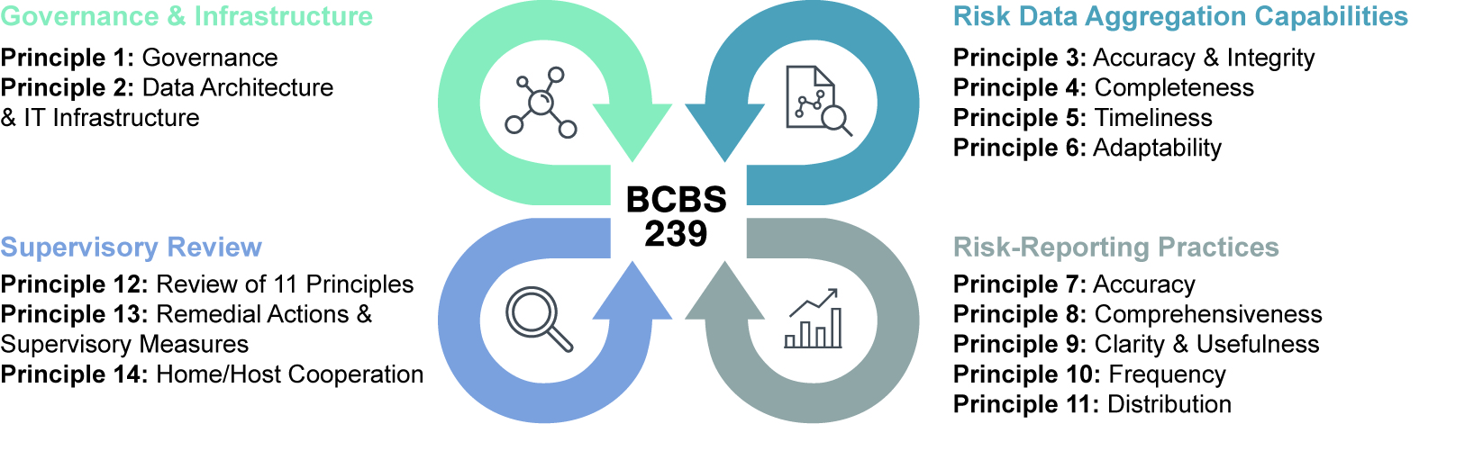 Since 2013, global systemically important banks (G-SIBs) embarked on the journey to implement 11 non-supervisory Principles for effective risk data aggregation and risk reporting (the Principles) with expectations of adoption and compliance by the end of 2016.1 Although the Principles were initially intended for G-SIBs, the BCBS strongly suggested that national supervisors also apply the Principles to domestic systemically important banks (D-SIBs). Since the Principles were issued, various regulatory bodies across the globe including the Office of the Comptroller of the Currency (OCC) and the Office of the Superintendent of Financial Institutions (OSFI) have communicated expectations of compliance, thereby making BCBS 239 a de facto standard across the financial services industry.2 Acknowledging the important role that supervisors play, three supervisory principles under "Supervisor Review” were also included to determine whether the Principles were achieving their desired outcomes.