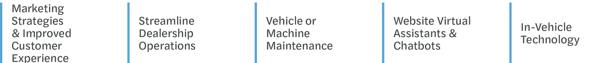 The rise in AI's popularity has had a significant impact on the dealership industry across auto, machinery and equipment, commercial truck, and recreational dealers. Many dealers have leveraged AI for a number of benefits: