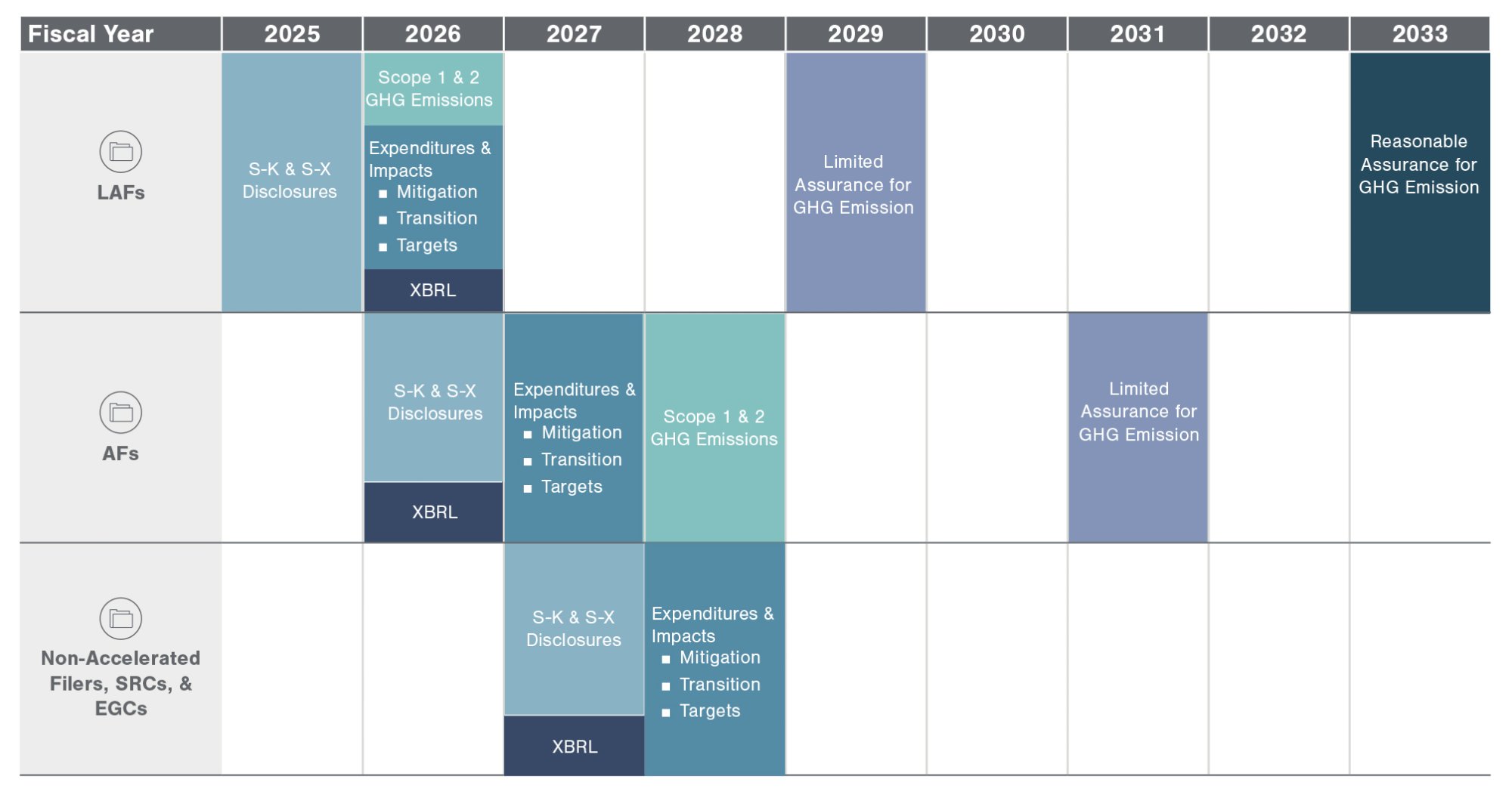 - Large, accelerated filers (LAFs) and accelerated filers (AFs) are required to report Scope 1 and 2 greenhouse gas (GHG) emissions and have those amounts assured.