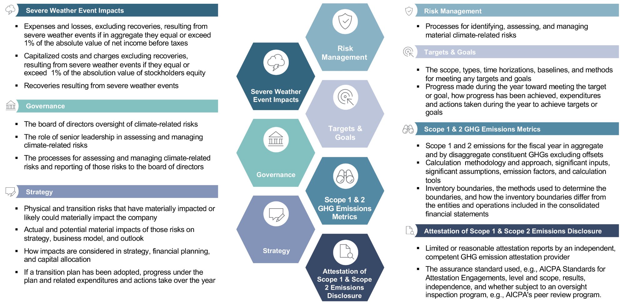 The rules require disclosing climate-related risks that are likely to have an actual or potential material impact on the company. It is important that organizations thoroughly review and understand the new requirements. Some key requirements include: