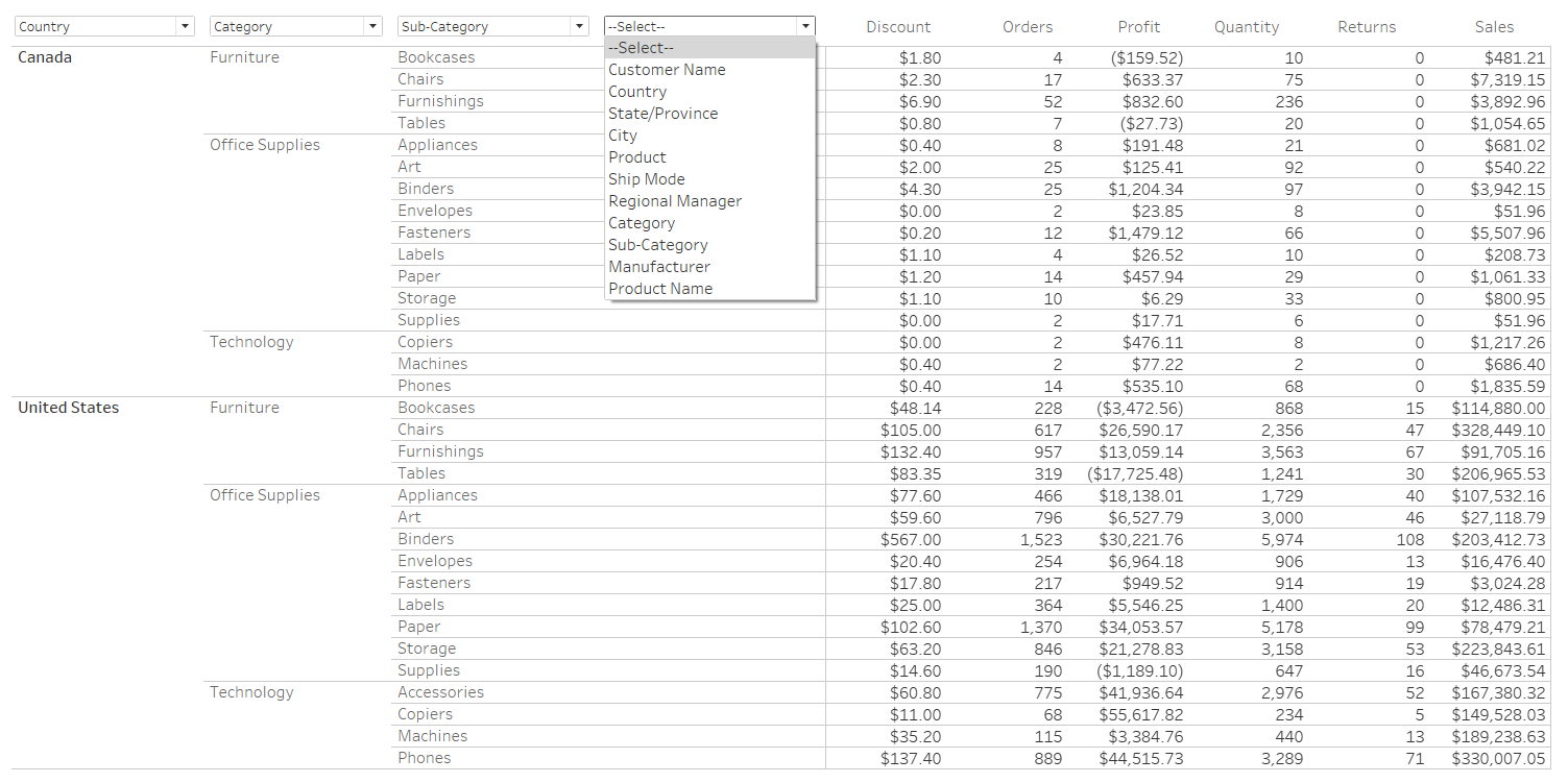 Dashboard Table With Dynamic Grouping. This table organizes data by dimensions the user selects for easier summarization and comparison. Grouping helps users quickly understand patterns across categories without needing to manually sort or restructure the data.