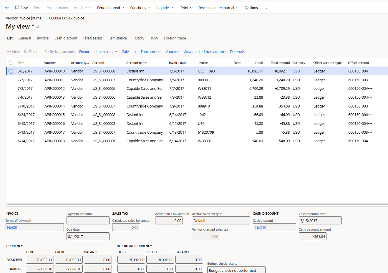 - View the detailed postings of the invoice